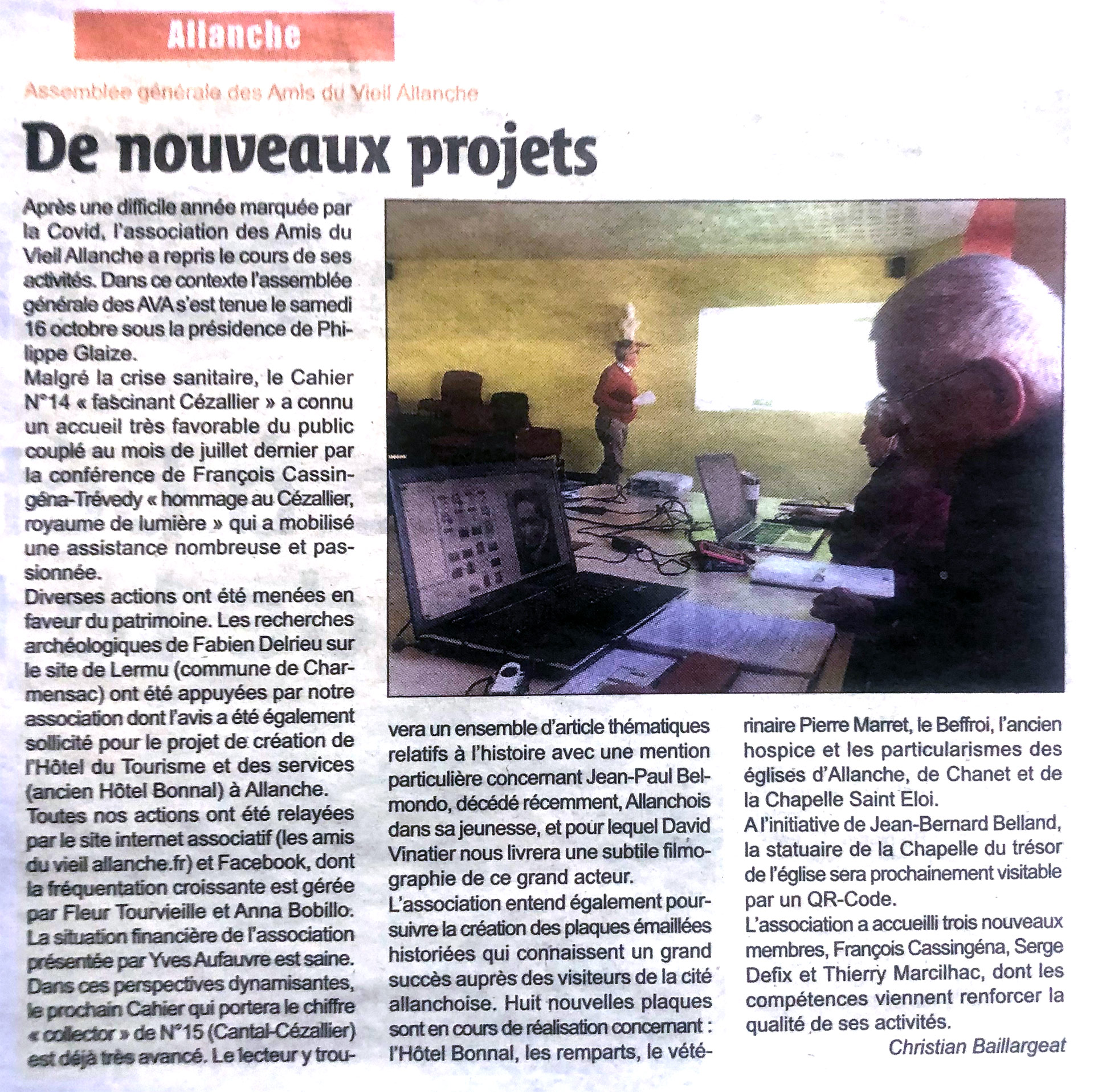 « De nouveaux projets »- Le Reveil Cantalien – 29 octobre 2021 « De nouveaux projets »- Le Reveil Cantalien – 29 octobre 2021 Articles liés « Les deux pieds dans la guerre, bel hommage » – La Montagne – 7 décembre 20252025, la montagne, les Amis du Vieil Allanche Hommage à Marcel Besombes …